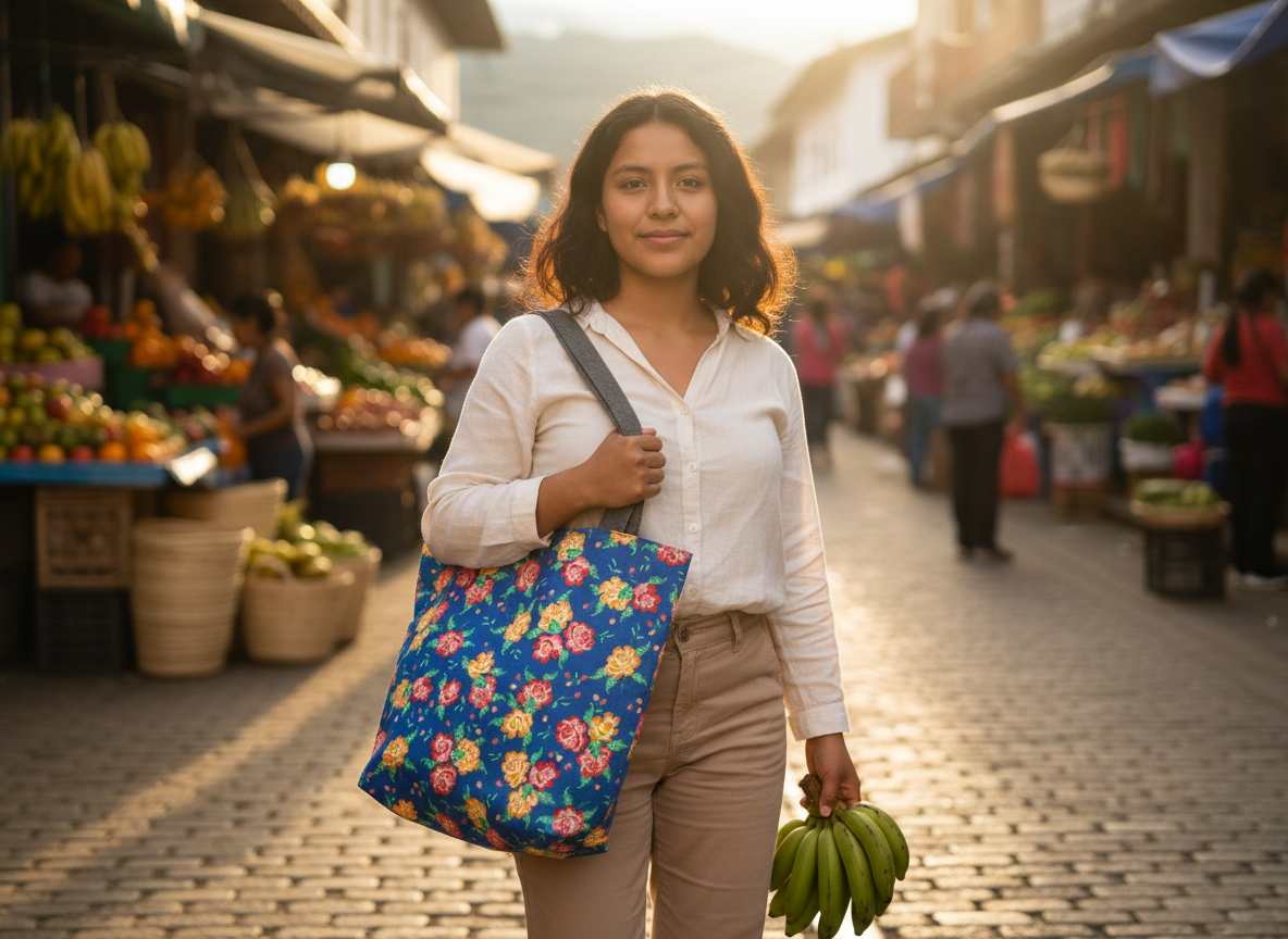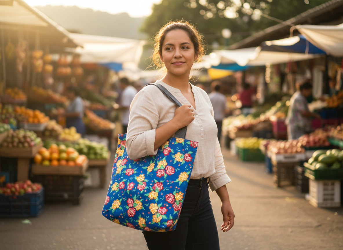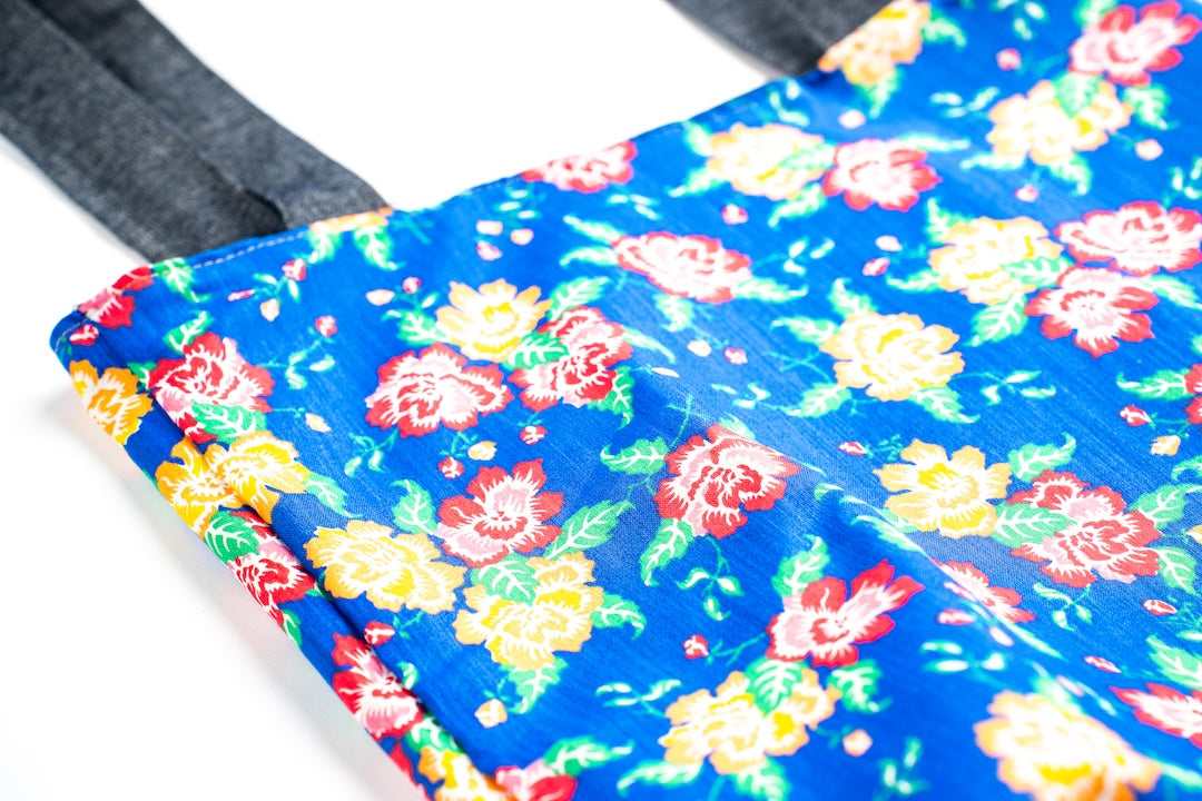 Bolso reversible, confeccionado con telas de diferentes colores y patrones. Cada modelo es único, lo que asegura que no habrá dos bolsos iguales. Su diseño versátil permite lucir dos estilos en uno, brindando funcionalidad y originalidad en cada uso.
