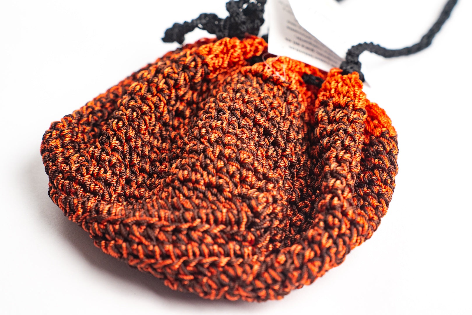 Bolso monedero en tejido negro y naranja, confeccionado con hilos de alta calidad. Es un accesorio elegante y versátil, ideal para cualquier atuendo y ocasión. Tiene un diseño único, cierre seguro y un interior espacioso para llevar lo esencial con estilo, perfecto para quienes buscan originalidad y moda.