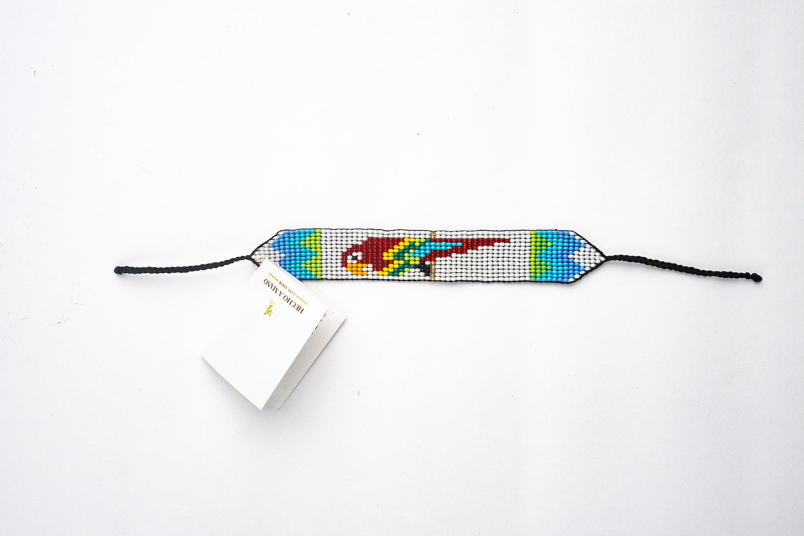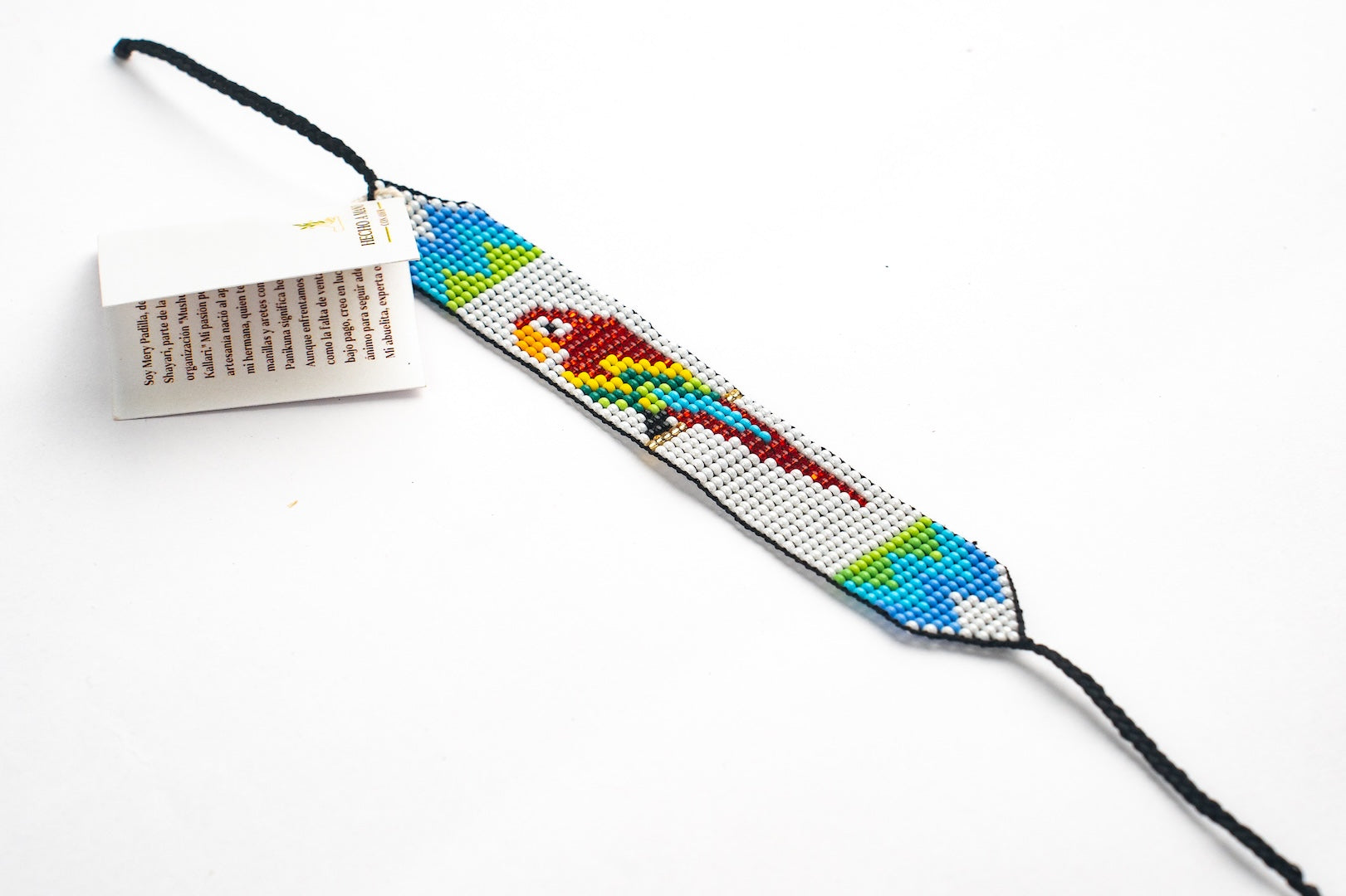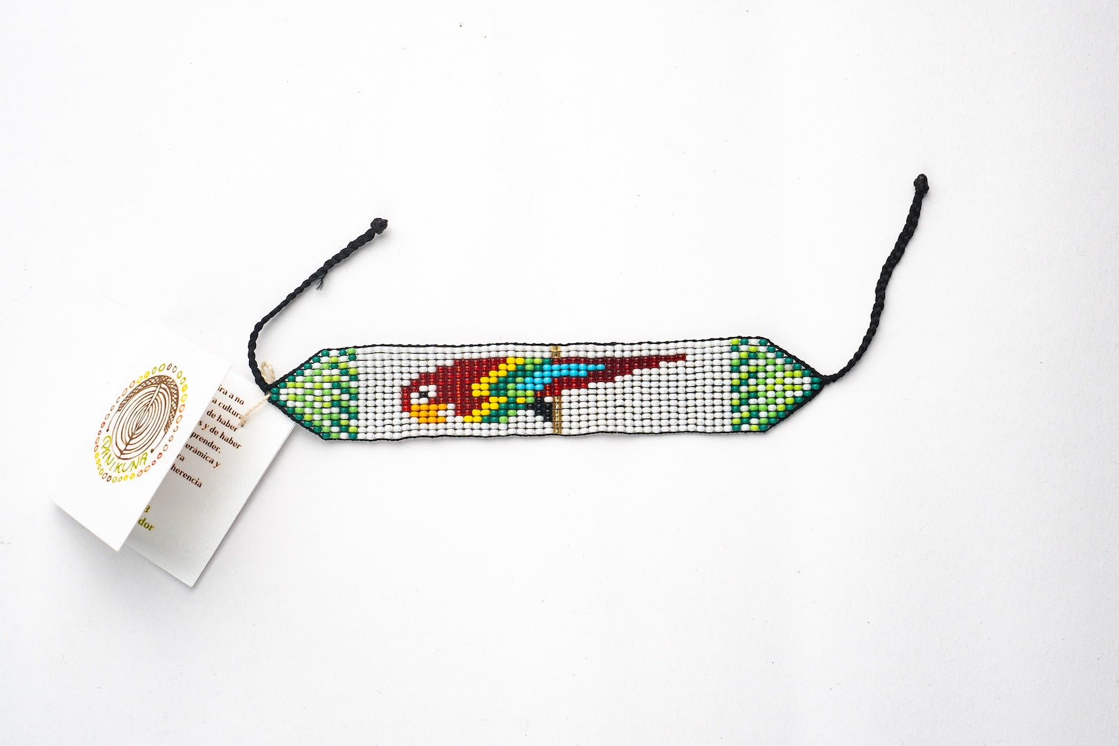 Este accesorio está inspirado en la belleza y el colorido del loro, reflejando su vibrante energía a través de los detalles minuciosamente elaborados. El mullo y la cuerda encerada se entrelazan en un patrón que evoca las plumas del ave, aportando un toque de sofisticación y estilo a cualquier conjunto. Ideal para quienes buscan una joya distintiva que cuente una historia y capture la esencia de la naturaleza.