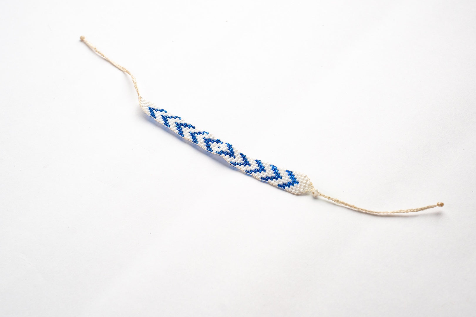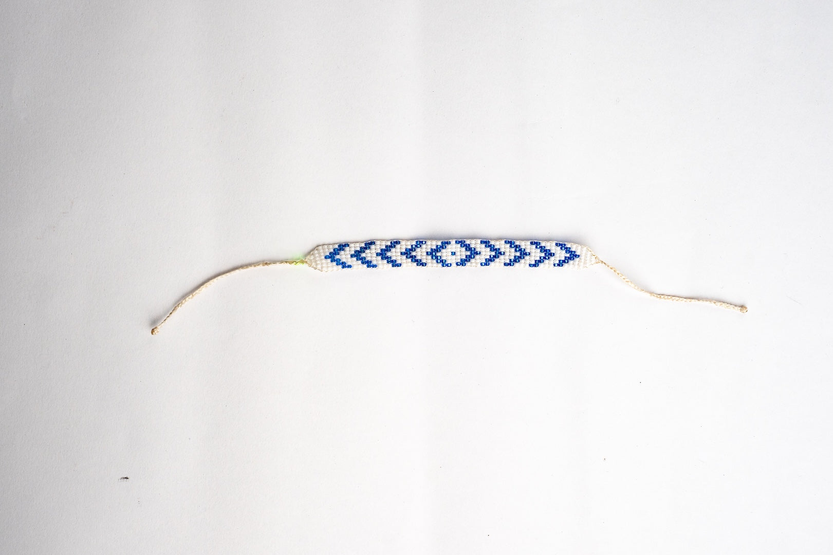 Diseñada con un patrón geométrico que resalta su carácter moderno y elegante. Los colores contrastantes de azul y blanco se entrelazan para formar triángulos dinámicos, creando una pieza visualmente atractiva que se puede llevar en cualquier ocasión. Ideal para aquellos que buscan un accesorio único que combine con una variedad de estilos.