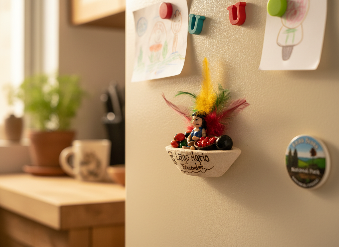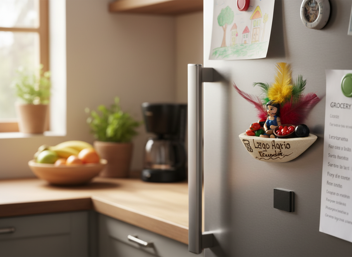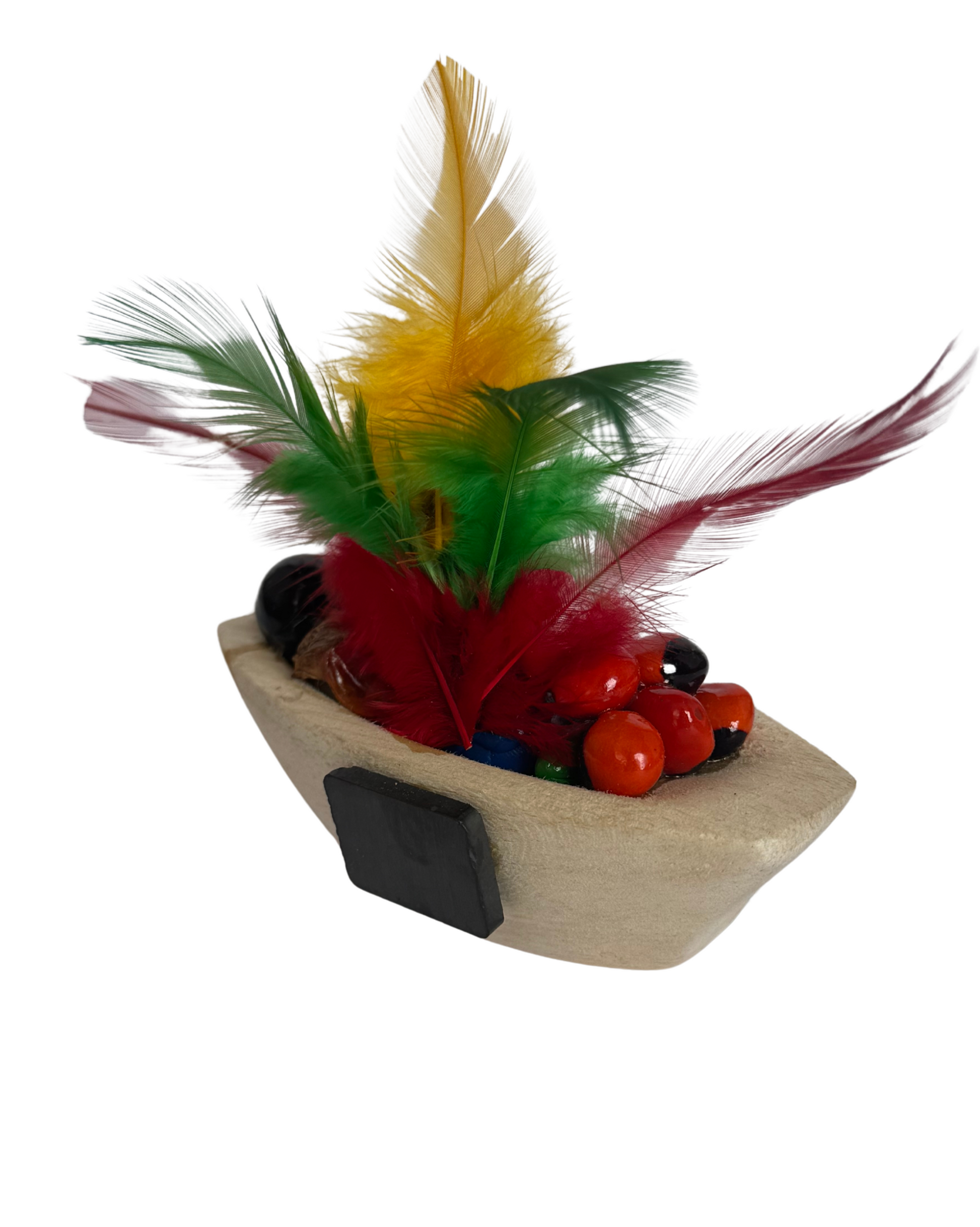 Artesanía Canoa Amazónica con imán – Decoración única elaborada en base de balsa tallada en forma de canoa, adornada con semillas nativas, plumas multicolor y detalles grabados en cautín. Incluye figuras en acrílico que representan a las nacionalidades de la provincia. Creación 100% artesanal de mujeres emprendedoras amazónicas, perfecta para regalar o dar identidad cultural a tus espacios. 🚣🌿✨