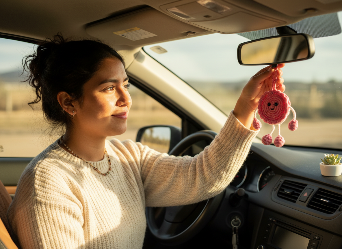 Su tamaño y ligereza lo hacen ideal para acompañarte en el retrovisor, mochila o donde quieras colgarlo. Perfecto para niños, adultos o cualquier amante de los detalles únicos, Daysi Rosado es más que un adorno: es un símbolo de creatividad, sostenibilidad y empoderamiento femenino.
