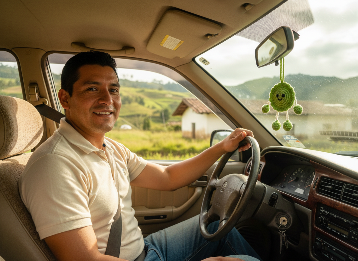 Lleva contigo un toque artesanal y único en cada recorrido con Daysi verde agua, un encantador colgante para autos elaborado 100% a mano por mujeres emprendedoras. Tejido en punto bajo con hilos de algodón y estructura de alambre reciclado, este diseño en forma de galleta rosada no solo decora, sino que transmite ternura, estilo y compromiso con lo hecho a mano.