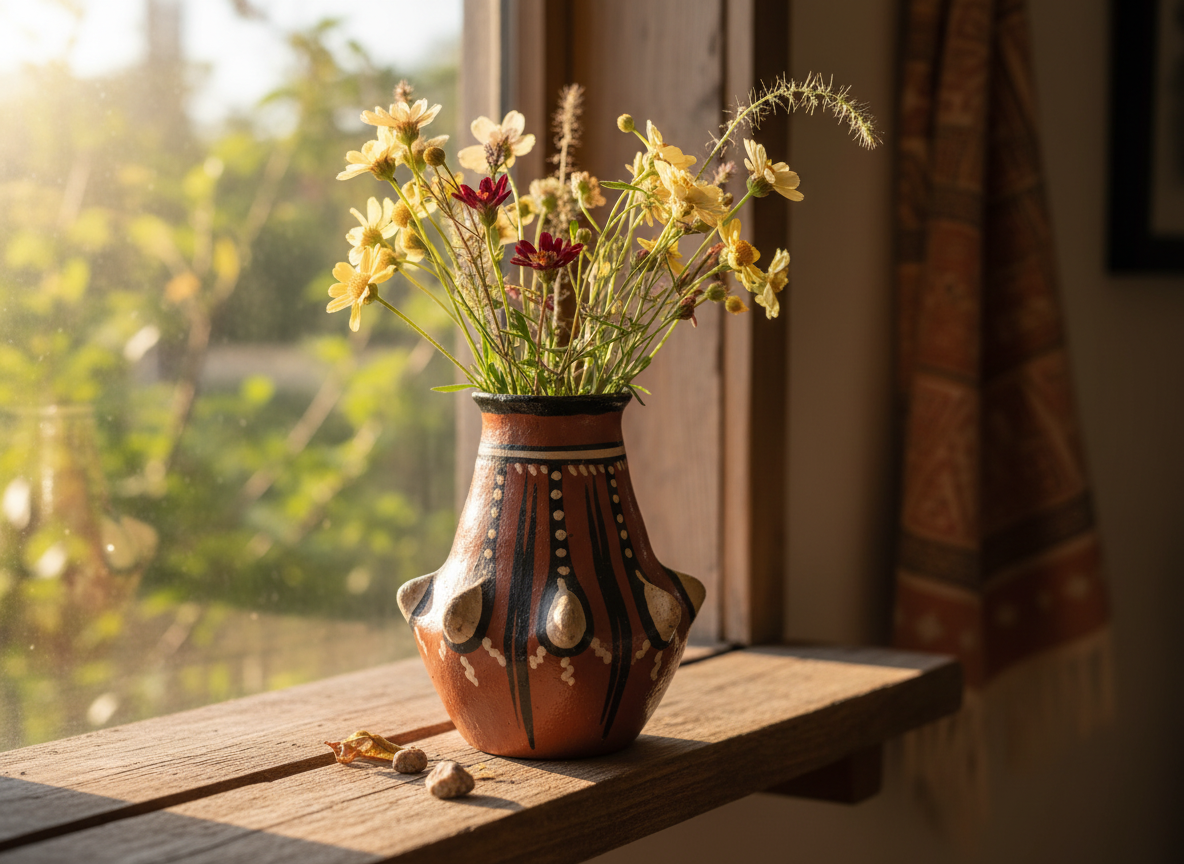 Pieza artesanal hecha con pigmentos de colores y barniz 100% natural, diseñado en forma de cuernos de animales. Representa la fusión entre tradición y naturaleza.