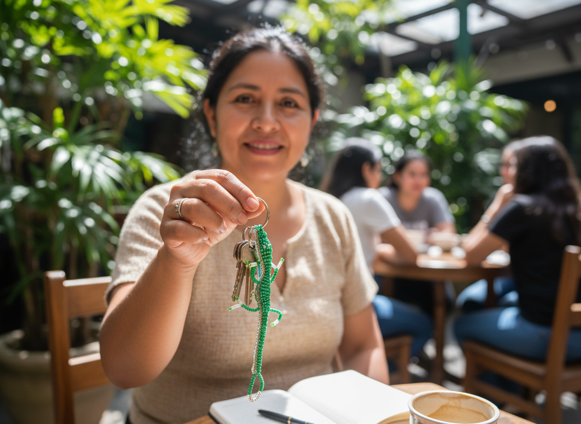 El llavero de lagarto, hecho a mano con delicadeza y atención al detalle, captura la esencia de estos fascinantes reptiles. Este llavero no solo es un accesorio práctico para mantener tus llaves organizadas, sino también una pequeña obra de arte que añade un toque de naturaleza y exotismo a tu día a día. Perfecto como regalo para los amantes de los animales o para aquellos que aprecian las piezas únicas y artesanales.