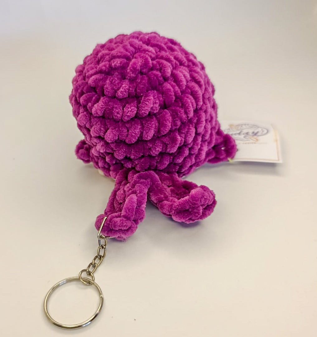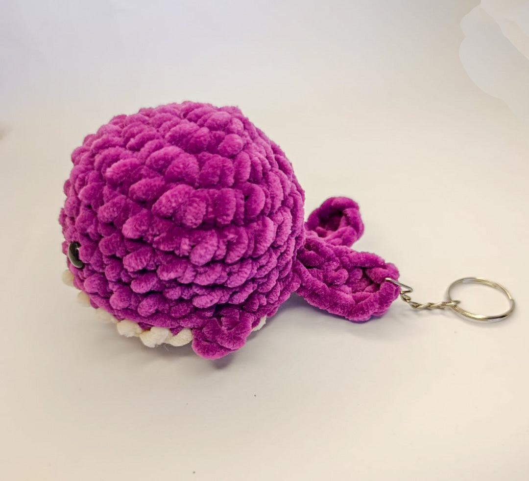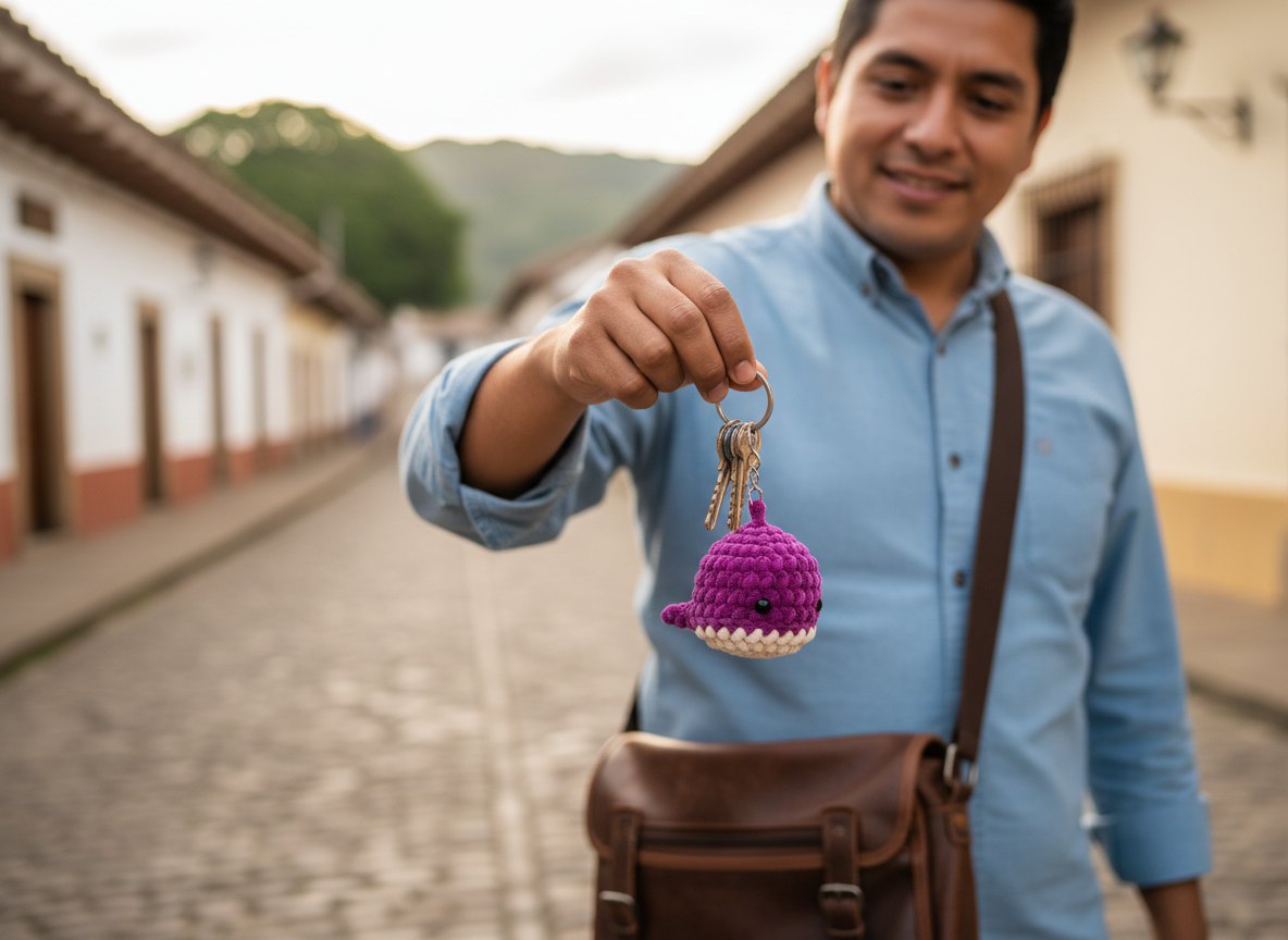 Conoce a Ballena Wylly, un encantador llavero tejido 100% a mano por mujeres emprendedoras que transforman hilos en pequeños tesoros. Elaborada con hilo chenille morado, relleno de plumón y adorables ojitos, esta ballena combina suavidad, color y funcionalidad en un solo detalle.