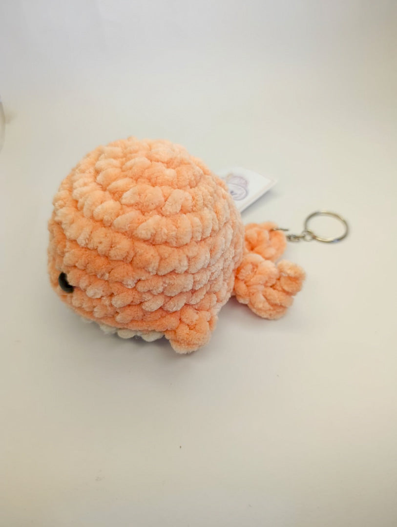Conoce a Ballena Pipo, un encantador llavero tejido 100% a mano por mujeres emprendedoras que transforman hilos en pequeños tesoros. Elaborada con hilo chenille color melón, relleno de plumón y adorables ojitos, esta ballena combina suavidad, color y funcionalidad en un solo detalle.