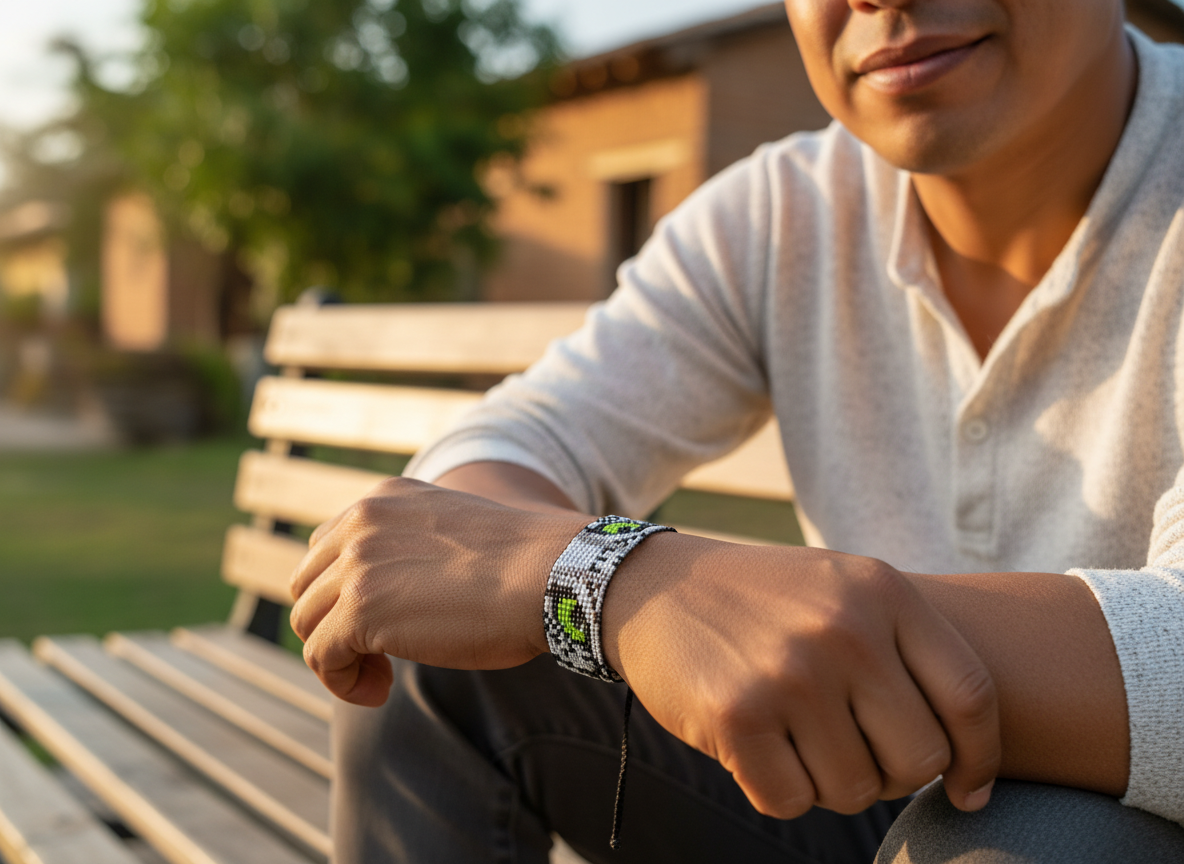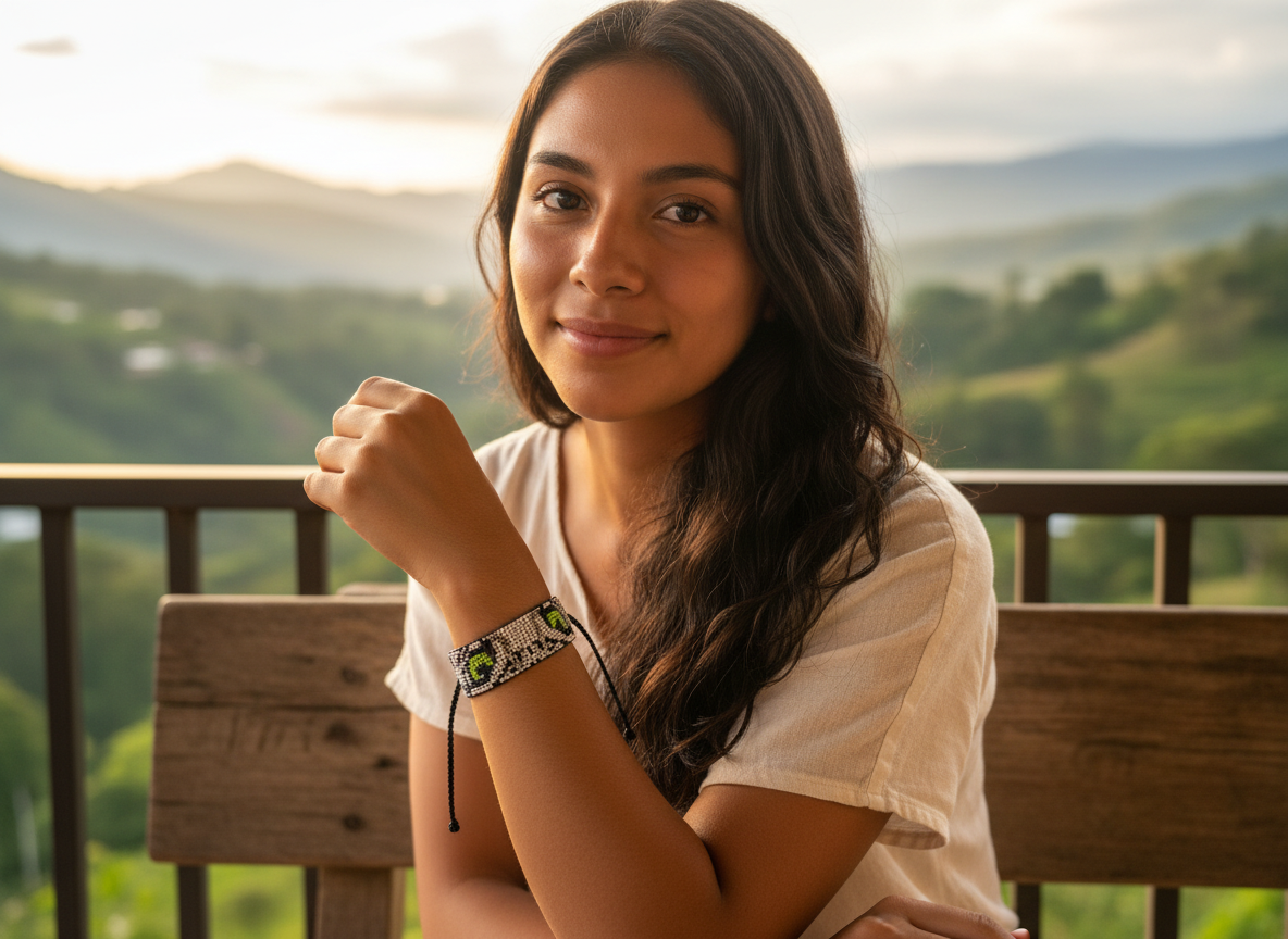 Diseñada para resaltar la belleza natural de los materiales. Los tonos verdes evocan la frescura de la selva, y la cuerda encerada ofrece un contraste elegante. Son piezas únicas que añaden distinción a cualquier estilo, ideales para atuendos casuales o formales, aportando color y personalidad.