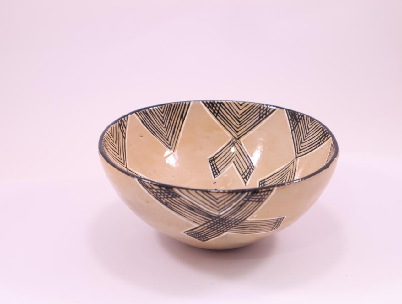 Mocagua Cola de Pescado es una pieza de barro inspirada en las formas fluidas y simétricas de la naturaleza acuática. Su diseño evoca la cola de un pez, símbolo de movimiento, abundancia y conexión con los ríos que nutren la vida. Esta creación une lo orgánico con lo ceremonial, recordando la relación sagrada entre el agua, la tierra y la cultura ancestral.