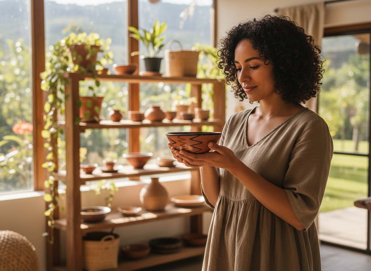 Vasijas medianas/grandes decoradas con patrones naturales y de sueños. Reflejan la rica herencia cultural Kichwa.