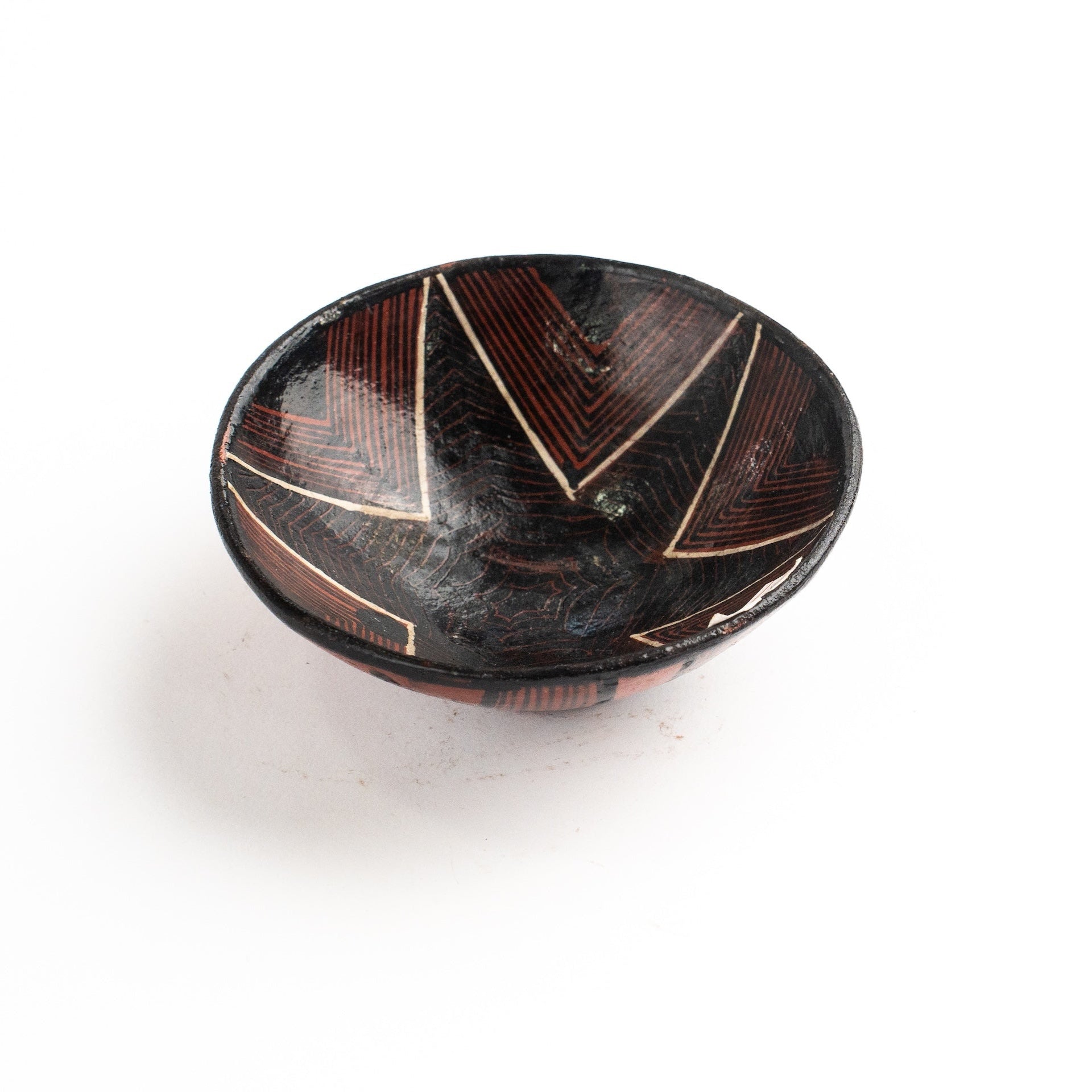 Vasijas medianas decoradas con patrones naturales y de sueños. Reflejan la rica herencia cultural Kichwa.