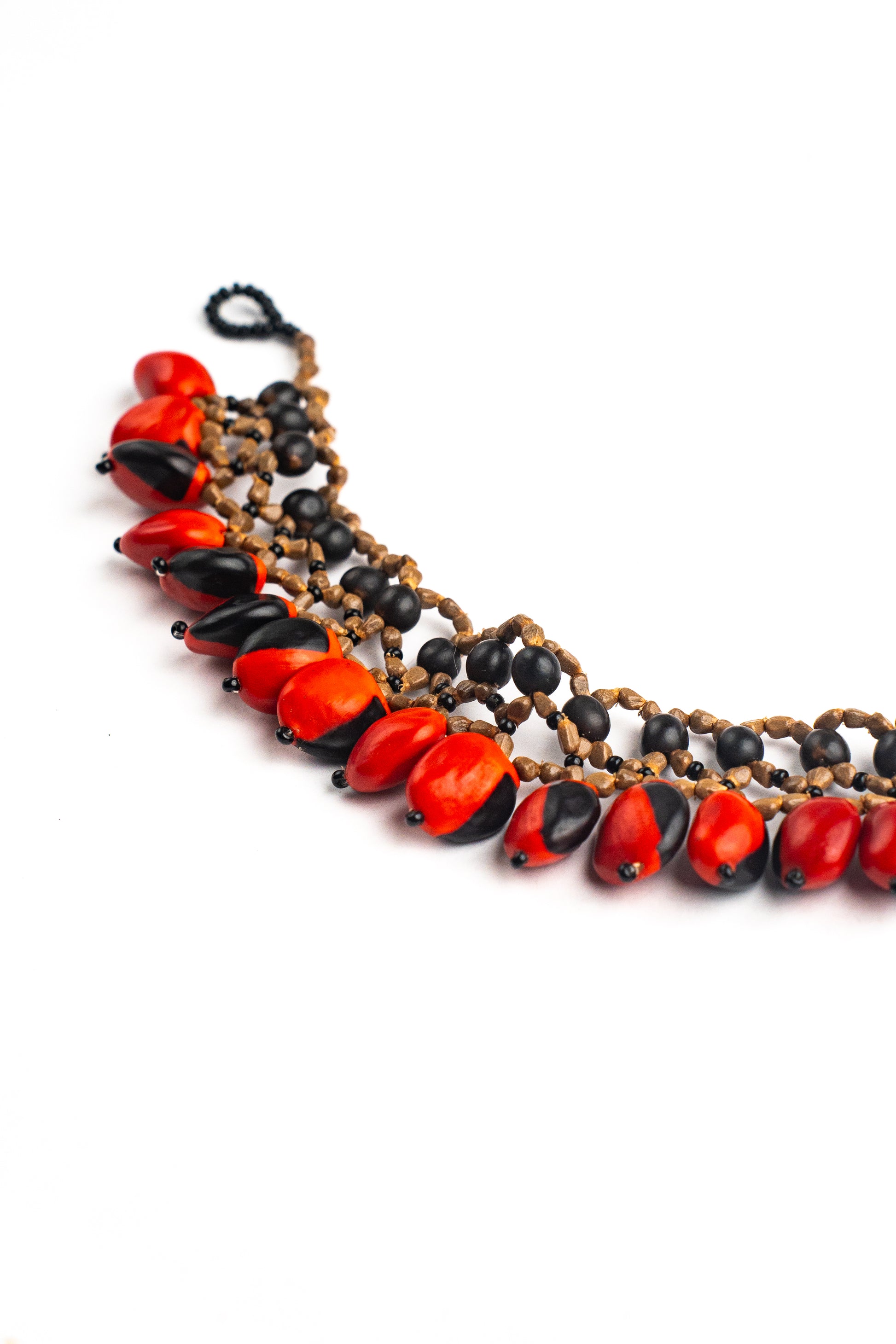 Tobillera porta fortuna hecha con huayruro, shiwango y achira. Estas semillas son conocidas por su energía positiva y propiedades protectoras, ideales para atraer buena suerte y alejar energías negativas. El huayruro simboliza prosperidad, el shiwango aporta estabilidad y la achira añade elegancia natural, convirtiéndola en un amuleto que combina tradición y estilo.